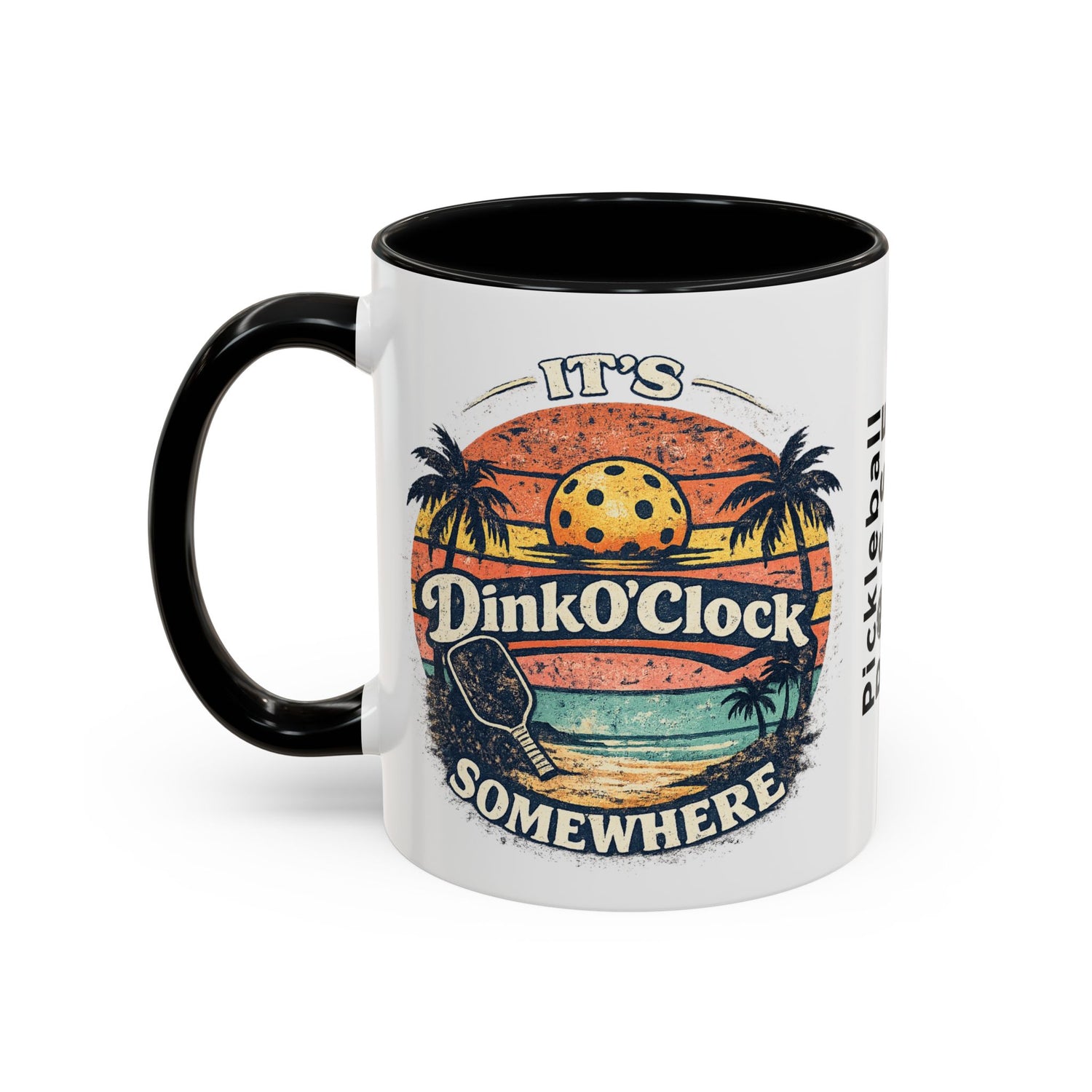 Pickleball Mug — "It’s Dink O’Clock Somewhere" Retro Beach Coffee Cup (11/15oz)